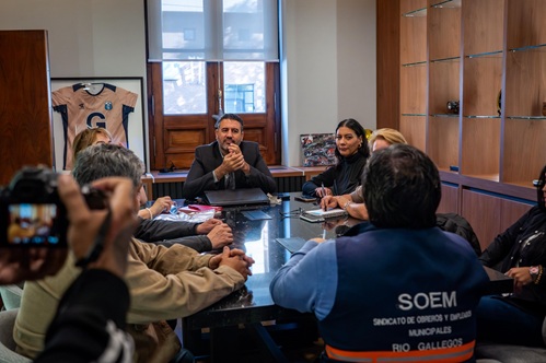 Del encuentro participaron el jefe de Gabinete, Diego Robles; las secretarias Sara Delgado y Mónica Gutiérrez; la concejala Daiana Rutherford en representación del Legislativo Municipal; la vocal por los jubilados, Viviana Carabajal; el secretario general del SOEM, Pedro Mansilla; junto a los paritarios Oscar Coñuecar y Carlos Mansilla.