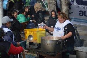 La medida de fuerza, contundente en toda la provincia, fue acompañada por una fuerte presencia de trabajadores y trabajadoras en las inmediaciones del Ministerio de Economía en Río Gallegos, donde además se llevó adelante una olla popular.